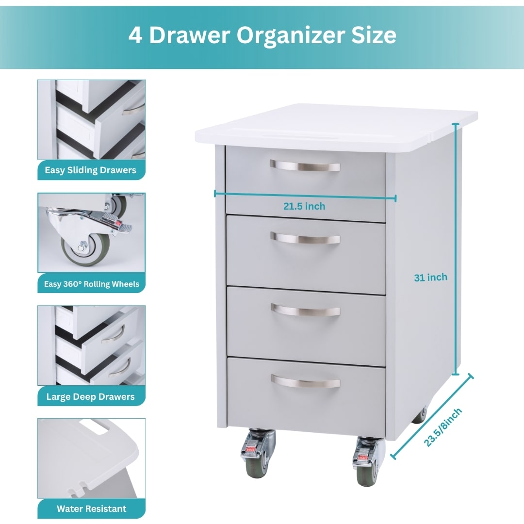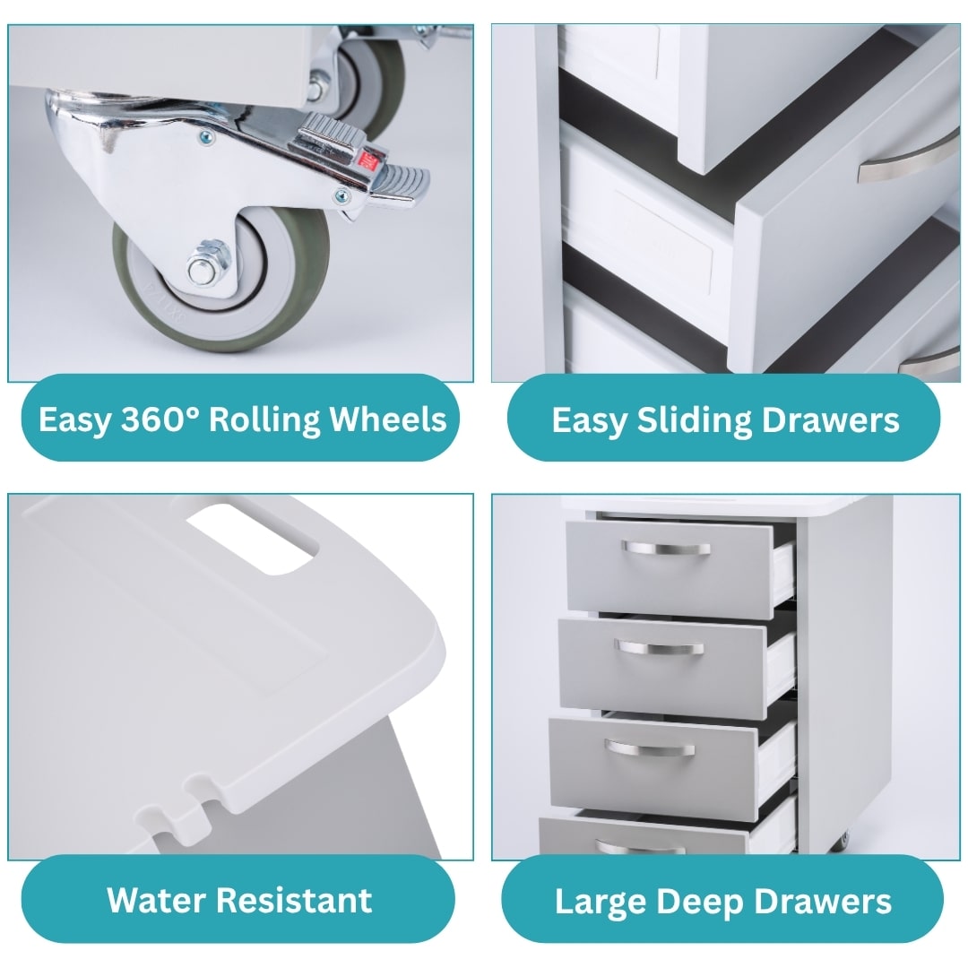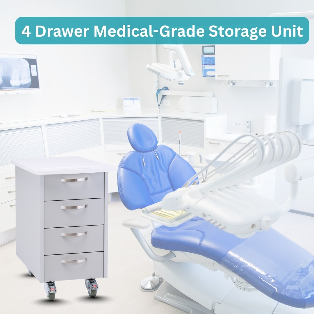 Specially designed for healthcare and laboratory use, the 4 Drawer Medical-Grade Storage Unit emphasizes infection control and reliability. Constructed from bold, durable materials, it features antimicrobial technology for enhanced hygiene and water-resistant surfaces for effortless cleaning. The smooth-rolling casters make it easy to move across all types of flooring, ensuring flexibility in dynamic environments. Four smooth-glide drawers provide convenient, organized storage for essential tools and supplies, making this cart a trusted option for hygiene-critical settings. Compact yet practical, it supports professionals in maintaining safety, organization, and efficiency every day.