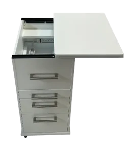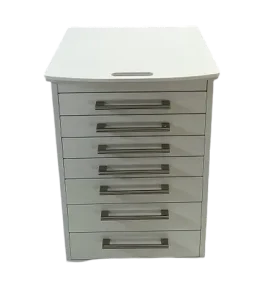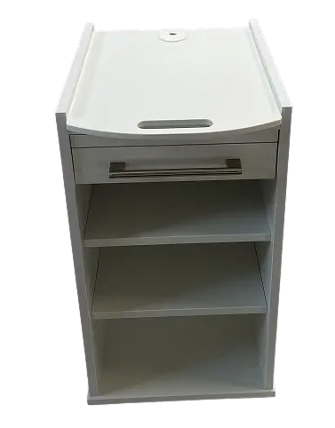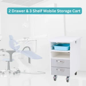 The Utility Mobile Cart is a practical and durable storage solution built to support ultrasonic scalers, curing lights, electrosurge units, and other essential dental equipment. It features one instrument drawer, two adjustable shelves, and an open base space for additional storage that allows cords and cables to pass through cleanly for a clutter-free workspace. The cart’s steel-sided construction ensures strength and long-lasting performance, while its compact design makes it easy to maneuver within the dental office. Designed and built in North America, it arrives fully assembled, includes transportation within the US and Canada, and is backed by a 2-year ironclad warranty for peace of mind.