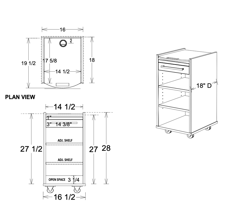 Dimensions : 16.5” W x 18.5” D x 31.5” H